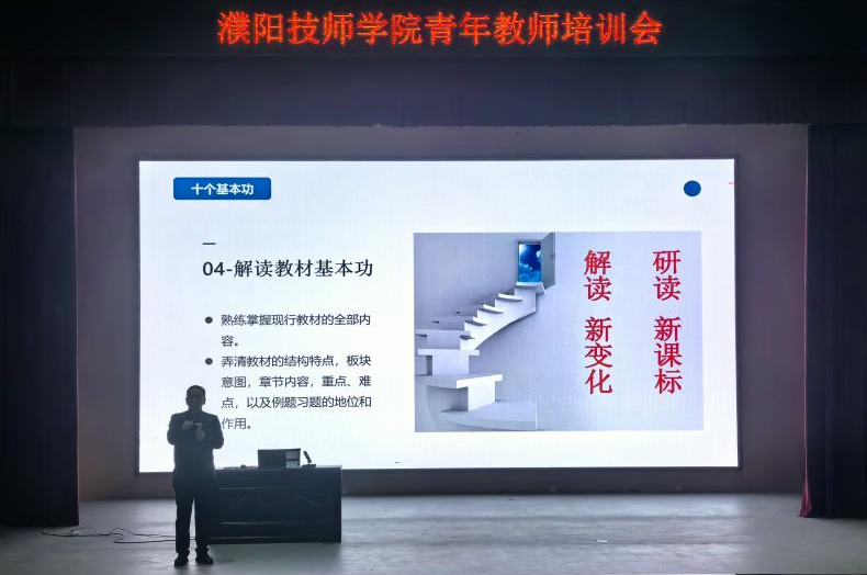 为进一步提升我校青年教师教学水平,夯实教学基本功,更好地服务学校教育教学,11月22日下午,濮阳技师学院举行了青年教师培训会,学院党委书记刘玉峰作总结,副校长张晓华作专题讲座,学院近三年入职的任课教师参加培训。