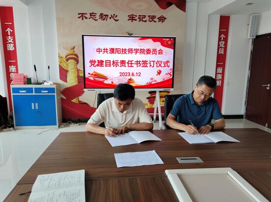 为进一步加强基层党组织建设和党员队伍建设,落实党要管党、从严治党要求,落实好全面从严治党的主体责任和监督责任,6月12日,濮阳技师学院党委召开各支部委员会议,五个支部的支部书记集中签订2023年度党员目标管理责任书,所有科级干部以普通党员身份参加集中签订仪式。