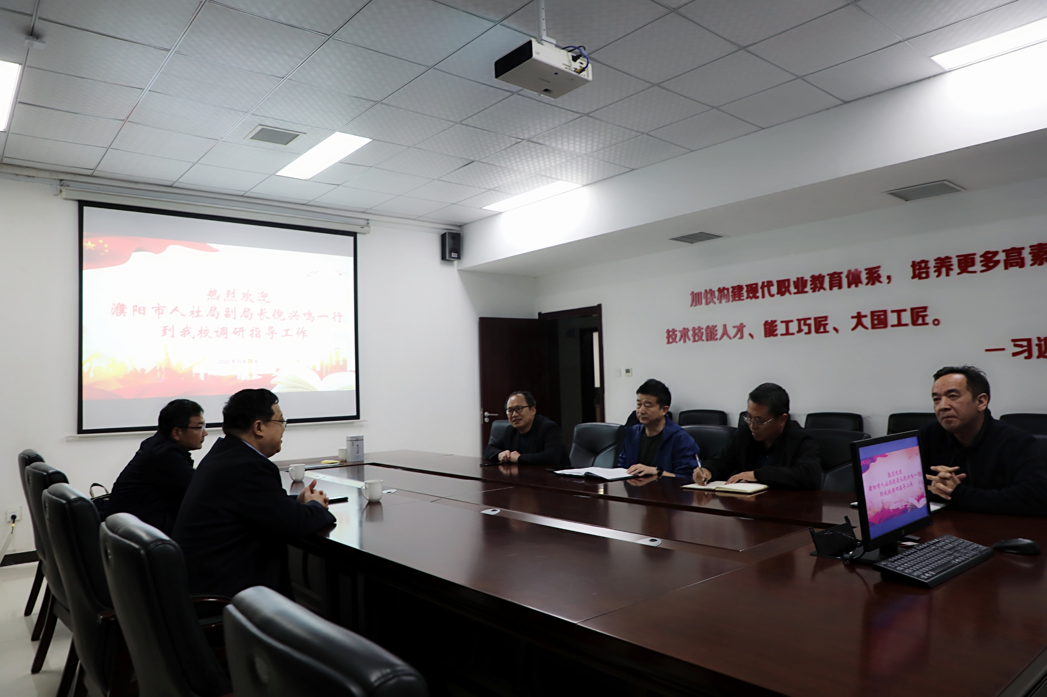 10月28日下午,市人社局副局长倪兴鸣一行到我校调研指导技能培训工作。学校领导班子成员参加了座谈会。