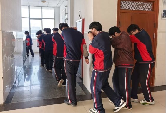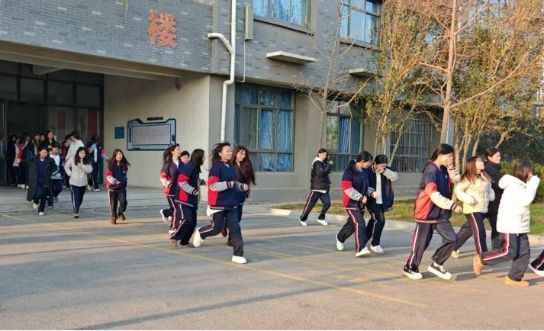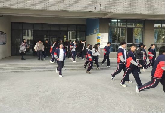 随着警报响起,演练正式开始。全体学生在任课教师和班主任的指挥下,迅速进入应急状态。同学们用湿毛巾捂住口鼻,低姿弯腰,严格按照“两路纵队、靠右下行”的原则,沿指定路线快速、有序撤离至指定的安全区域。各楼层调度教师协同引导,确保通道畅通,整个过程无拥挤、无踩踏,安全高效。